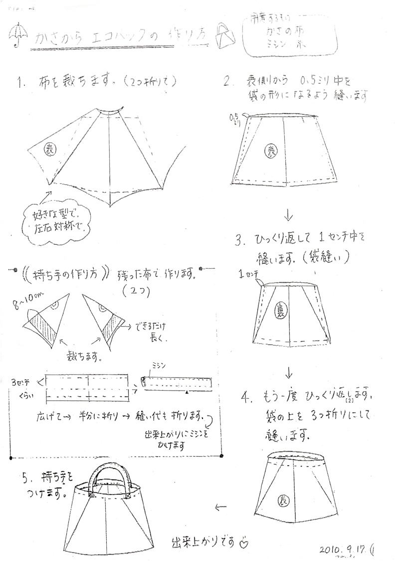 傘の布を使って、バッグをつくる