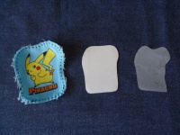 - ③イラストを中心に厚紙より少し大きめに布を切る