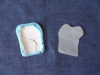 - ①菓子缶などに入っている薄紙(透けて見える紙)で型をとり型紙にする