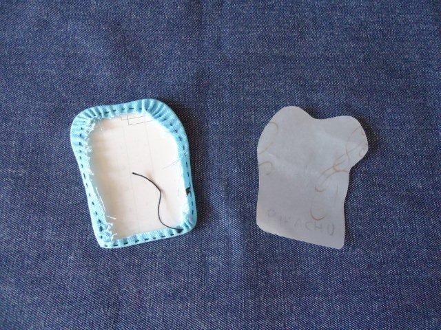 - ⑥厚紙を抜いて、土台の布と縫い合わせる