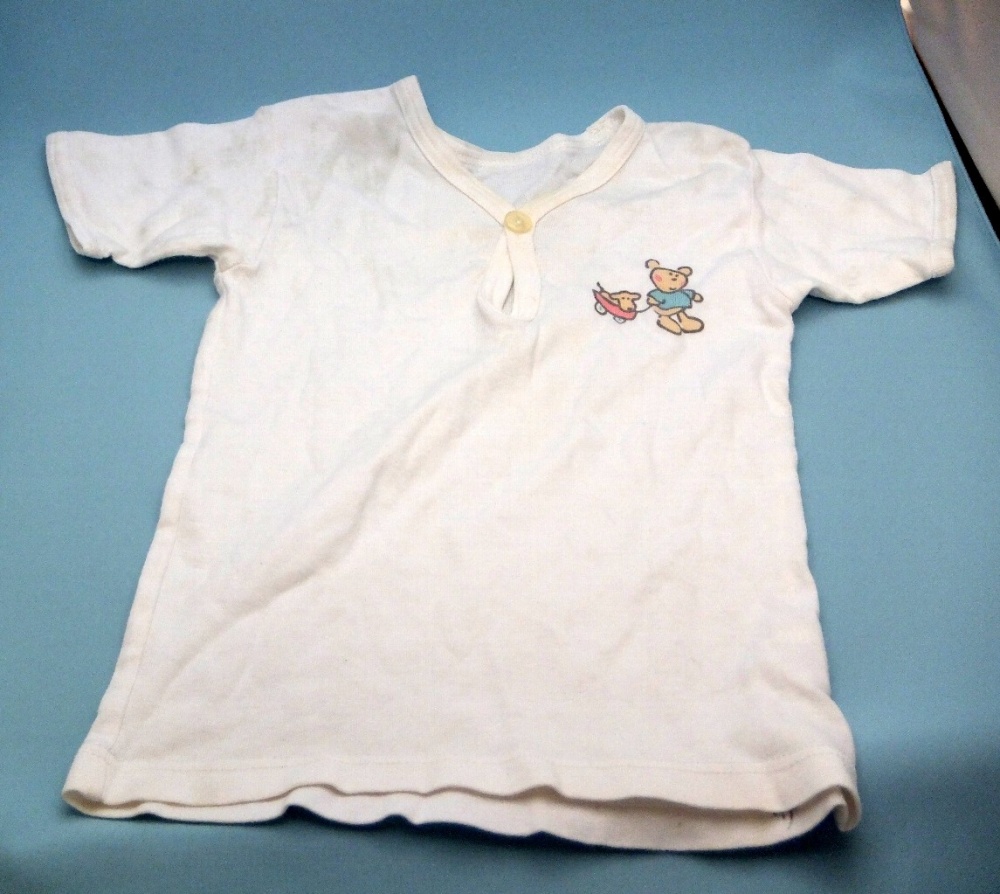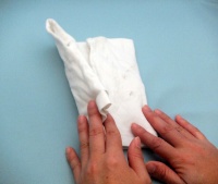 赤ちゃんのときに着古した肌着を、紙おむつの中に入る大きさに折るだけ。